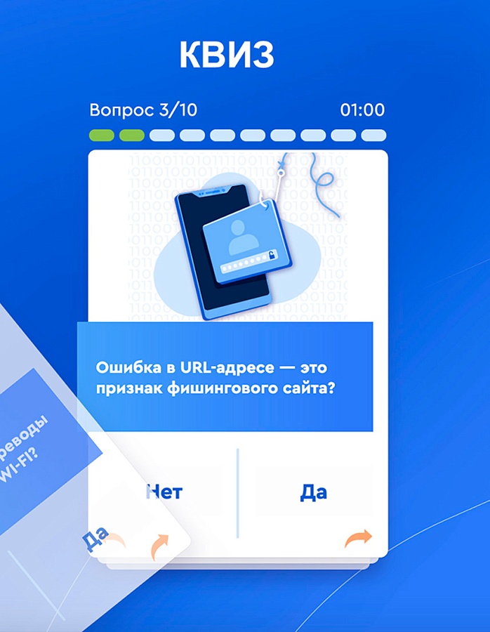Разработанная нами авторская механика объединяющая Квиз и Тиндер (свайп влево или вправо). Мы делали подобные проекты для оффлайн мероприятий, выставок, для отделов HR (тестирование сотрудников), презентации услуг через обучение. В механику лаконично встраивается рейтинговая таблица для увлечения игроков и раздачи подарков. Подобные игры показывают отличные результаты.