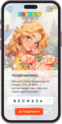 Вовлекающая игровая механика. Позволяет внедрить несколько уровней с наградами, добавить всплывающие элементы с бонусами, акциями и преимуществами вашего бренда